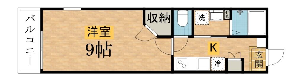 お部屋が9帖、脱衣所・独立洗面台があり一人暮らしには嬉しい設備付きです🥰