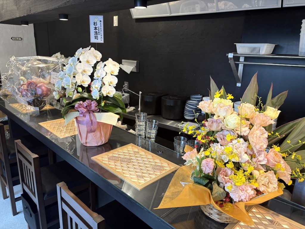 (弊社より開店のお祝いにお花を贈らせていただきました)